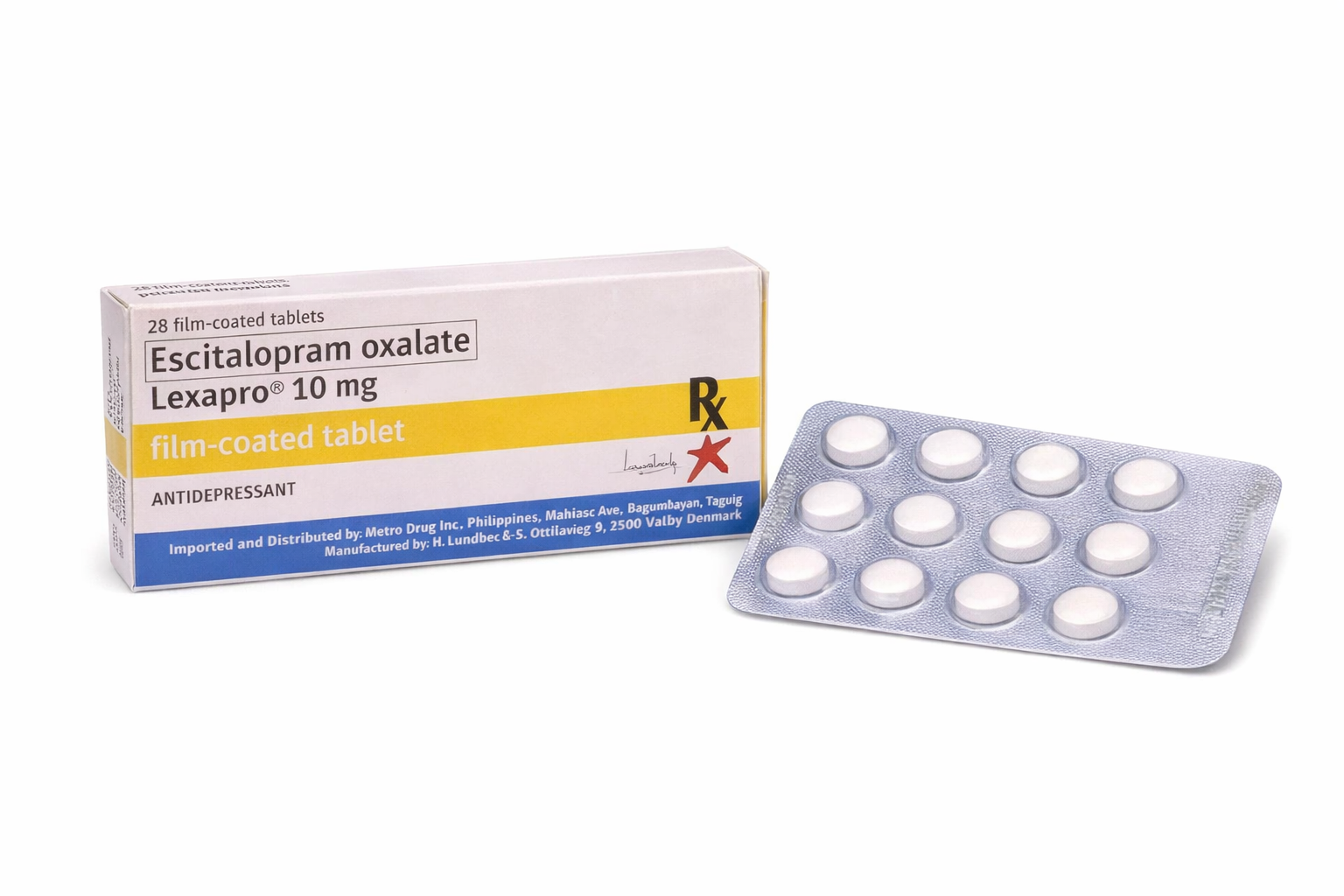 Lexapro (Escitalopram) 10mg is an SSRI antidepressant that is used to alleviate symptoms of depression and anxiety. When serotonin levels are elevated, the drug normalizes the mood, improves sleep, and gives a feeling of emotional well-being. To further promote mental health, buy emotional balance complex now.